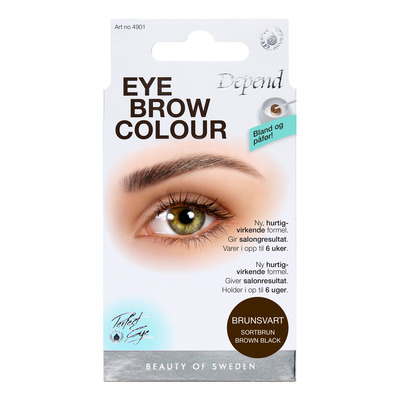 Brun/sort øjenbrynsfarve fra Depend, som giver et naturligt friskt look, der holder i flere uger!