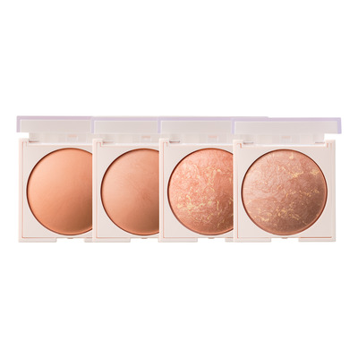 Påfør med en stor pensel på kinder, pande, næse og hage. Byg op til ønsket intensitet med lette strøg.