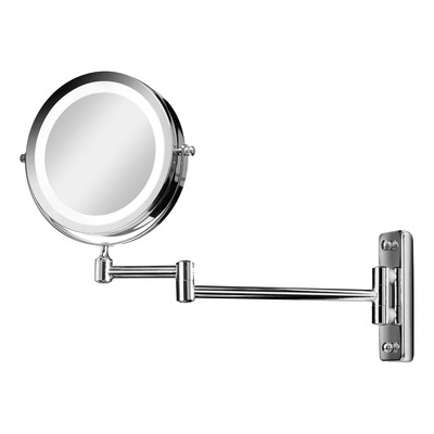 Gillian Jones Dobbeltsidet LED Vægspejl med x10 forstørrelse er et vægmonteret spejl med sammenfoldelig arm i chrom