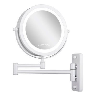 Gillian Jones Dobbeltsidet LED Vægspejl med x10 forstørrelse er et vægmonteret spejl med sammenfoldelig arm i hvid