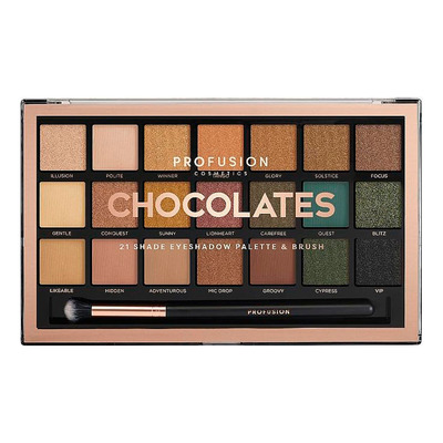 Profusion Eyeshadow 21 Shade Palettes Pro Artistry Chocolates er en øjenskyggepalette med 21 varme nuancer