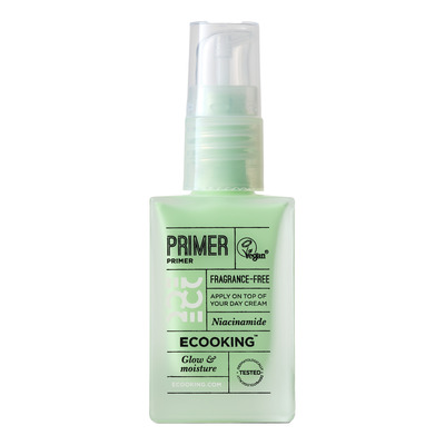 ECOOKING Green Primer er en farvekorrigerende primer, der dæmper rødme og forlænger holdbarheden af din makeup