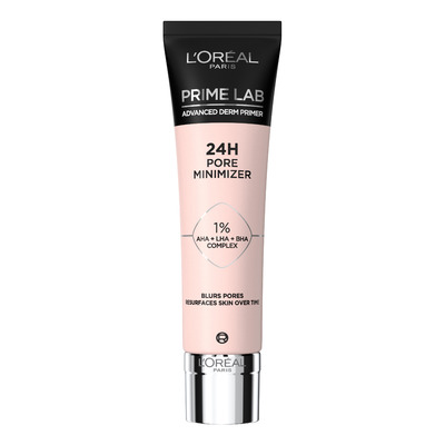 Prime Lab Advanced Derm Primer 24H Pore Minimizer fra L'Oréal Paris er med til at minimere synligheden af porer i op til 24 timer. Primeren anvendes inden makeup, som en base. Basen skaber et glat og jævnt udgangspunkt, der sikre at makeuppen holder længere. Primerens formel er beriget med 1% AHA+LHA+BHA kompleks.