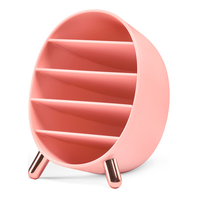 Gillian Jones Makeuporganizer Rund i lyserød er en praktisk og pladsbesparende løsning til opbevaring af dine makeupfavoritter. Den runde form kombineret med fem horisontale rum giver et godt overblik og nem adgang til produkter som børster, læbestifter og øjenskygger. Organizerens skrå opbygning og stabile ben gør den både funktionel og dekorativ.
