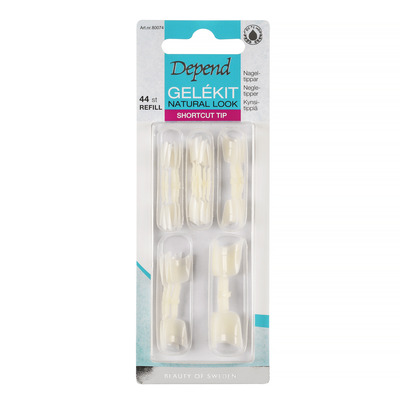 Depend Shortcut Tip Natural Refill indeholder 44 stk. tynde, fleksible tipper, som reducerer behandlingstiden med 35%, da filning ikke behøves for at udjævne neglen. De kunstige negle er en del af Depends nylancerede serie, som har en perfekt pasform og en blødere, smidigere kant ved neglebåndene, som gør Depend Shortcut Tip Natural Refill mere behagelige at have på.