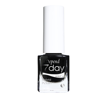 Depend 7day Hybrid Polish i farven 7013 Goth Black er lavet på en hybridformulering, der holder i op til en uge på neglene. 7day laksystemet er velegnet til dig, som ønsker ekstra glans til neglene og en super god holdbarhed. Depends 7day neglelak er nem at påføre og fjernes let med en neglelakfjerner fra Depend.