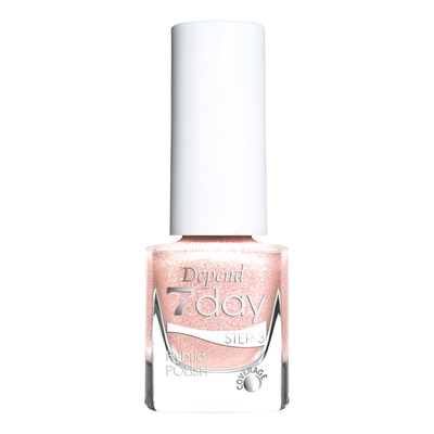 Depend 7day Country Chic 7369 er en hybridneglelak med flot glans og god holdbarhed. Formuleringen giver en gel-lignende finish og holder i op til 7 dage. Den er let at påføre og nem at fjerne med almindelig neglelakfjerner. Farven er en lys rosa med fine sølvglimmerpartikler, der giver en elegant og festlig effekt. Lakken hærder i naturligt dagslys eller lampelys og kræver derfor ikke UV-lampe.