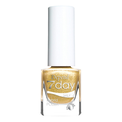 Depend 7day Country Chic 7370 anvendes som trin 3 i 7day-systemet og bruges sammen med base coat og top coat. Flasken har symboler, der viser dækkeevne. Den dækkende gyldne farve med glimmer er oplagt til særlige anledninger, hvor du ønsker at tilføje ekstra glans til dit look.