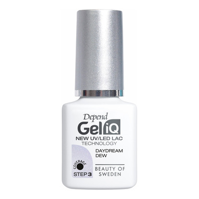 Depend Gel iQ Daydream Dew giver en glansfuld finish og en holdbarhed på op til 14 dage. Lakken er tør og modstandsdygtig straks efter sidste trin med High Shine Cleanser. Farven dækker let og giver neglene et raffineret look. Farven er en halvdækkende, lys lavendel med perlemor, som tilfører en drømmende effekt.