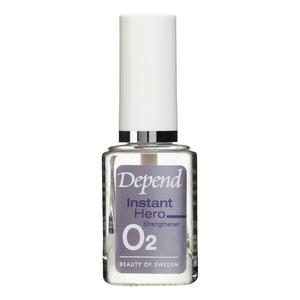Depend Instant Hero Strengthener er udviklet til negle, der har mistet styrke og fleksibilitet. Den danner en usynlig og fleksibel armering, som øjeblikkeligt beskytter og styrker neglen. Indeholder AHA (alfahydroxysyre), der hjælper med at binde fugt og genopbygge neglestrukturen. Kan bruges som ufarvet lak eller som base under neglelak.
