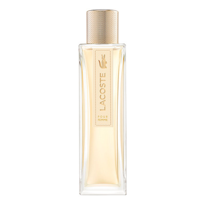 Lacoste Pour Femme Eau de Parfum fanger nutidens kvinders frie ånd. Denne blomsteragtige og træagtige duft åbner med fresia og krydret peber. Det feminine hjerte har noter af heliotrop, jasmin og rose. Varm cedertræ og ruskind giver struktur og elegance til denne signaturduft. Lacoste Pour Femme-flasken har en slank silhuet og er et symbol på moderne kvinder. Den ydre emballage viser flaskens timeglasform i beige, guld og hvide nuancer.
