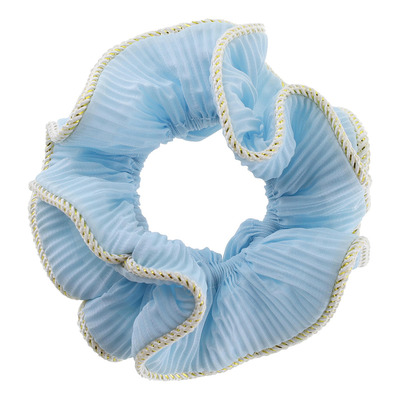 By Stær Lilje Scrunchie i pastel blå er en chiffon-scrunchie med krøllet effekt og glimmerkant