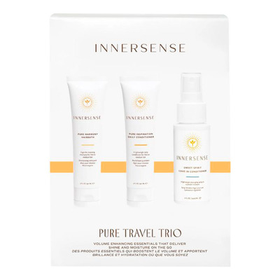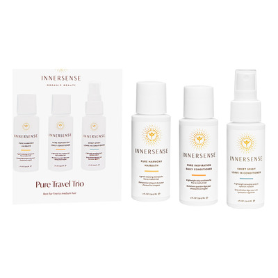 Innersense Pure Travel Trio er et rejsesæt med tre plejende produkter, der er perfekte til fint og normalt hår. Sættet indeholder: Pure Harmony Hairbath, en skånsom og farvesikker shampoo, Pure Inspiration Daily Conditioner, som fugter og gør håret let, og Sweet Spirit Leave In Conditioner, der giver ekstra pleje og gør håret lettere at style.