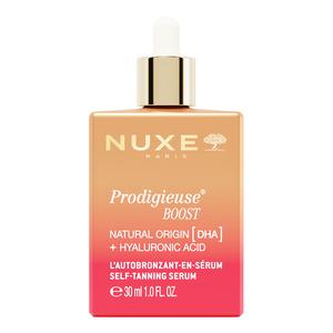 Nuxe Prodigieuse Boost Self-Tanning Serum er et selvbrunende serum, der gradvist giver en naturlig og jævn solbrun teint. Med 100% naturligt afledt DHA udvikles farven allerede efter første påføring og holder i mindst tre dage. Serummet er beriget med hyaluronsyre, som tilfører langvarig fugt og giver huden en fyldigere og mere ensartet udstråling.