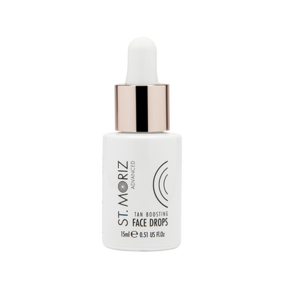 St Moriz Advanced Tan Boosting Face Drops er en ansigtsselvbruner i drops-format. Formlen indeholder DHA og er kombineret med glykolsyre og salicylsyre til kemisk eksfoliering samt valnøddeskalspulver som mekanisk eksfoliant. Sheasmør og solsikkeolie tilfører fugt og en blød konsistens under og efter påføringen.