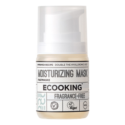 ECOOKING Fugtmaske Parfumefri er blevet opgraderet med en lettere konsistens, der absorberes hurtigere i huden. Den nye opskrift indeholder dobbelt så meget hyaluronsyre, som arbejder intensivt på at tilføre og binde fugt i huden. Masken kombinerer to typer hyaluronsyre, der både trænger dybt ned og beskytter hudens overflade, hvilket reducerer fine linjer og giver en blød og velplejet hud.