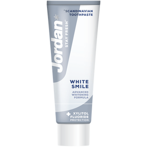 Jordan White Smile har en specielt udviklet kombination af ingredienser, der effektivt fjerner pletter fra for eksempel kaffe og te for naturligt hvidere tænder. Tandpastaen har en mild whitening formulering, der er skånsom mod emaljen. Læs mere her.