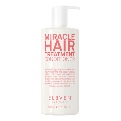 Eleven Australia Miracle Hair Treatment Conditioner er en meget rig balsam, der plejer og styrker tørt eller farvet hår. Den indeholder hyaluronsyre, som øger fugtniveauet i håret og hjælper med at reducere krus samt forebygge spaltede spidser. Samtidig tilfører A- og C-vitaminer næring, så håret fremstår sundt, blødt og glansfuldt.