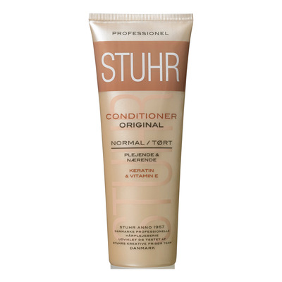 STUHR Original Conditioner er en nærende balsam med styrkende Keratin samt Vitamin E og F. Den dybdevirkende formel plejer håret grundigt og efterlader det blødt, skinnende, fuld af liv og nemt at rede ud. Conditioneren er velegnet til dagligt brug efter hårvask.
