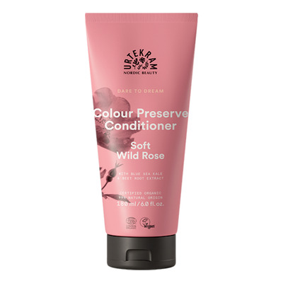 Urtekram Soft Wild Rose Colour Preserve Conditioner er en beskyttende balsam til daglig pleje af farvet hår. Balsammen er formuleret med fugtgivende aloe vera og glycerin, som sørger for, at håret bevarer sin blødhed og glans. Ydermere indeholder Soft Wild Rose Colour Preserve Conditioner strandkål og rødbedeekstrakt, som er med til at bevare farven i dit hår og samtidig bliver det lettere at børste håret. Balsammen har en mild, forfriskende duft af vilde roser, som efterlader håret med en skøn duft.