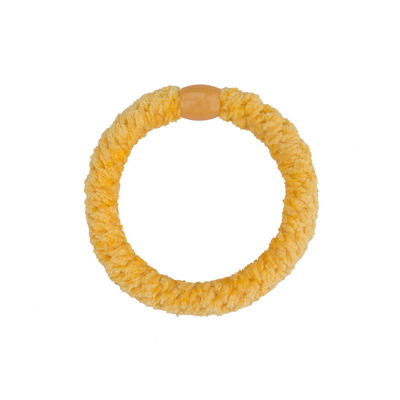 Denne fine velour hårelastik fra By Stær holder håret på plads med dens kraftige elastik. Elastikken har et flot farvet fletbånd, der pifter frisuren op. Hårelastikken kan bruges til både tyndt og tykt hår, og slider ikke på håret mens den holder håret på plads. Denne variant har en fin, gul farve, der pynter flot i håret eller omkring håndledet.