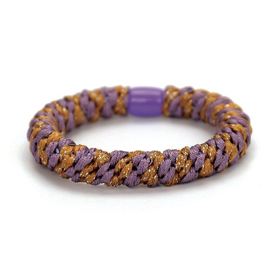 Denne fine hårelastik er lavet i det meget populære snoet design, der er lavet med en kraftig elastik, som er betrukket med et farvet bånd. Elastikken er med til at pifte dit outfit op, samtidig med den holder dit hår på plads. Den kan bruges i både tykt og tyndt hår, og snoet omkring håret så mange gange du ønsker, til den har det ønskede hold på håret. Denne elastik er lavet i et flot design med lilla og brune farver.
