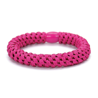 Hårelastik i det populære snoet design med en kraftig elastik og betrukket med et pinkfarvet bånd