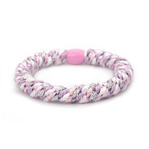 Denne fine hårelastik er lavet i det meget populære snoet design, der er lavet med en kraftig elastik, som er betrukket med et farvet bånd. Elastikken er med til at pifte dit outfit op, samtidig med den holder dit hår på plads. Den kan bruges i både tykt og tyndt hår, og snoet omkring håret så mange gange du ønsker, til den har det ønskede hold på håret. Denne elastik er lavet i et flot design med lyserød og lilla farver.