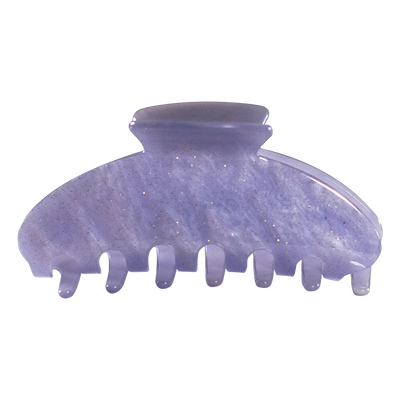 Hvad enten du vil pifte dit outfit op med lidt ekstra farve eller blot vil gøre det nemt og hurtigt at sætte dit hår op, er den fine hårklemme fra Happy et must. Denne hårklemme har en smuk, lilla farve med små glimmerkorn, der giver et festligt og feminint udtryk. Klemmen måler ca. 10 cm og er derfor ideel til opsætning af hele håret. "Tænderne" på klemmen er længere end normalt, hvilket gør, at klemmen sætter sig bedre fast i håret og forhindrer, at den glider ud.