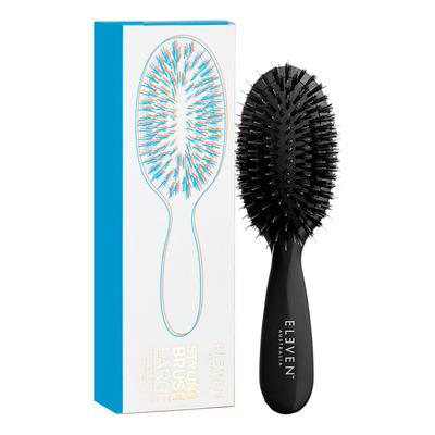 Eleven Australia Styling Brush Large er en professionel stylingsbørste med et ovalt børstehoved og ergonomisk greb, der gør den ideel til daglig brug. Kombinationen af 80% vildsvinehår og 20% kvalitetsnylon fordeler hårets naturlige olier og stimulerer hovedbunden under børstning. Det efterlader håret sundt, glansfuldt og nemt at forme, hvilket gør den perfekt til både styling og opfriskning i løbet af dagen.