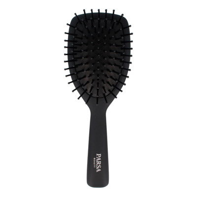 Parsa Beauty Carbon Antistatic Paddle Brush S er en alsidig børste med antistatiske egenskaber til daglig hårpleje og styling. De afrundede plaststifter er beriget med kulstof og turmalin, som hjælper med at reducere statisk elektricitet og gør håret mere medgørligt. Børsten stimulerer samtidig hovedbunden og kan anvendes i både tørt og fugtigt hår. Den er velegnet til glatte frisurer, udredning af krøller og til at forberede håret til føntørring eller glattejern.