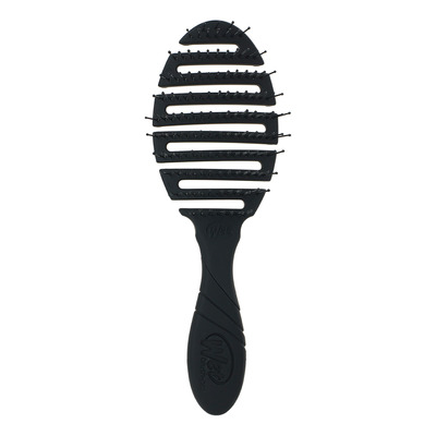 Wetbrush Pro Flex Dry Black har et fleksibelt børstehoved, der giver op til 30% hurtigere tørretid. Børsten er designet med tynde, stærke og fleksible børstehår, der nemt glider igennem håret og reducerer slid samt ømhed i hovedbunden. De afrundede spidser masserer forsigtigt hovedbunden, hvilket fremmer blodcirkulationen. Wetbrush Pro Flex Dry passer til alle hårtyper og kan bruges i både vådt og tørt hår. Den fungerer også effektivt på parykker og løshår.