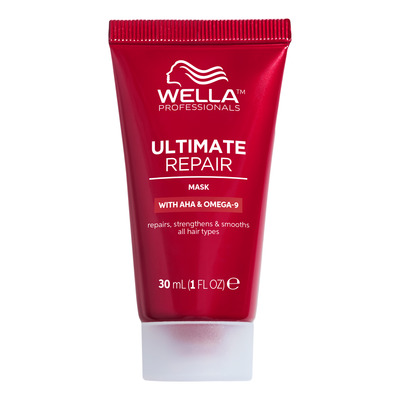 Wella Professionals Ultimate Repair Mask er en reparerende hårkur, der styrker og blødgør skadet hår. Den indeholder AHA og omega 9, som genopbygger bindingerne i håret og hjælper med at forbedre den ydre barriere ved varme- eller blegeskadet hår.