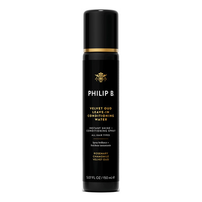 Philip B Velvet Oud Leave-in Cconditioning Water giver følelsen af en plejende conditioner og shine spray uden at tynge håret. Den lette, revitaliserende spray efterlader håret glansfuldt og med en glat, silkeblød fornemmelse. Sprayen er lavet med et proprietært kompleks af kamille, kulsukker, henna, padderok, humle, rosmarin og brændenælde, som giver pleje og fugt til håret. En teknologisk avanceret, vandbaseret formular efterlader håret silkeblødt uden at tynge det. Leave-in sprayen giver glans og elasticitet til matte, tørre lokker, så de er nemmere at arbejde med. Infuseret med den friske, sofistikerede duft af Velvet Oud.