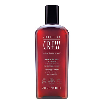 American Crew Hair & Body Daily Silver Shampoo er en glansgivende shampoo, der indeholder violet pigment til at neutralisere uønskede gule toner i håret. Shampooen efterlader håret med en koldere nuance og beskytter mod solens blegende effekt takket være UV-filtre. Med 95% naturlige ingredienser og en frisk duft af citrus og mynte kan den bruges dagligt uden at tynge eller farve håret. Den giver både håret og hovedbunden en frisk og fugtgivende følelse.