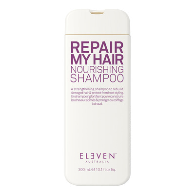 Eleven Australia Repair My Hair Nourishing Shampoo er en nærende shampoo til skadet og farvebehandlet hår. Den indeholder aktive ingredienser, der styrker hårstråene, tilfører fugt og øger volumen. Shampooen hjælper med at genopbygge beskadiget struktur og beskytter samtidig mod varme fra stylingredskaber op til 220 °C. Den efterlader håret blødt, glansfuldt og mere modstandsdygtigt.