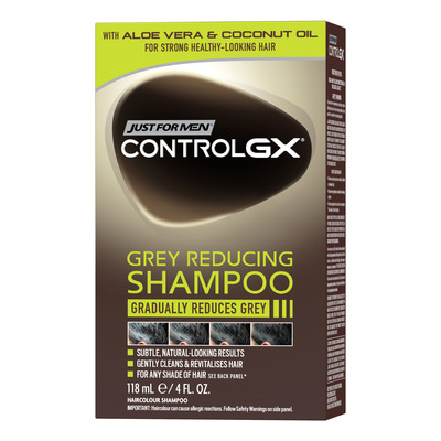 Just For Men Control GX Shampoo reducerer grå hår gradvist og giver et naturligt resultat samtidig med at håret plejes