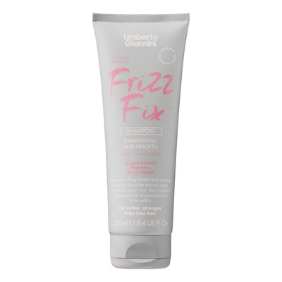 Umberto Giannini Frizz Fix Shampoo er en shampoo med en fugtgivende formel rig på peptider og hyaluronsyre, der bekæmper og reducerer krus ved at styrke håret indefra.