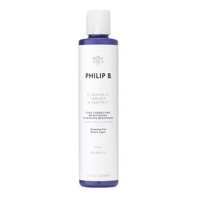 Philip B Icelandic Blonde Shampoo er skabt til at bevare de kølige toner i blonde og sølvgrå hårtyper. Dens unikke formel med blommeekstrakt neutraliserer uønskede kobberfarvede og gule toner, samtidig med at den fremhæver lyse striber og reflekser.