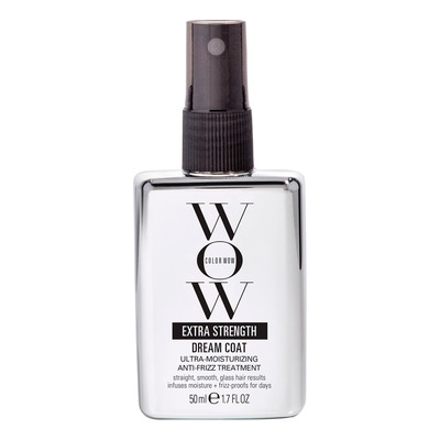 Color Wow Extra Strength Dream Coat er en varmeaktiveret spray, der giver langvarig frizz-kontrol og en glat, fugtafvisende finish. Den avancerede formel indeholder fleksible polymerer, som forsegler hårets overflade og beskytter mod luftfugtighed. Produktet er ideelt til tørt, porøst eller krøllet hår, som nemt bliver kruset.