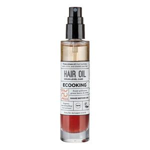 Ecooking Hårolie er en let trefaset olie, der giver intens pleje til alle hårtyper. Den er rig på økologiske og naturlige ingredienser som hørfrø-, althearod- og karanjaolie, som tilfører håret fugt og styrke. Hårolien beskytter samtidig mod UV-stråler og varme, så håret forbliver sundt og modstandsdygtigt. Olien forbedrer hårets elasticitet og mindsker spaltede spidser. Samtidig efterlader broccoli- og jojobaolie håret blødt og glansfuldt.