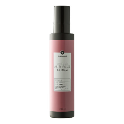 HH Simonsen Anti Frizz Serum virker både i vådt og tørt hår og efterlader ingen fedtet fornemmelse. Med varmebeskyttelse op til 230 °C og fugtbarriere holder det frisuren på plads hele dagen. Brugervenlig og effektiv, uanset hårtype og stil.