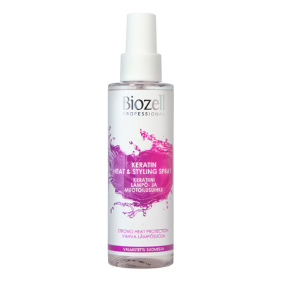 Biozell Professional Keratin Heat & Styling Spray giver stærk varmebeskyttelse op til 220 grader til brug med krølle- og glattejern. Giver stærkt, fleksibelt og langvarigt hold. Anti-frizz og reducerer hårbrud og hårskader under varmebehandling. Indeholder keratin der styrker hårstrukturen.