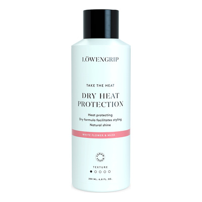 Löwengrip Take The Heat Dry Heat Protection er en varmebeskyttende spray med tør formel, der beskytter håret mod varmeskader op til 210°C. Sprayen appliceres på tørt hår og kommer ud som en let og luftig tåge, der giver komplet varmebeskyttelse, let hold og naturlig glans. Den er oplagt at bruge de dage, man ønsker at genstyle uden at skulle vaske håret.