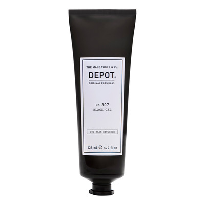 Depot 307 Black Gel er til mænd, der ønsker at dække de grå hår. Gelen er sort og særlig udviklet til mørkhåret, som begynder at få grå stænk. Den er med til at mindske synligheden af de lyse hår, samtidig med den giver volumen og medium hold til håret.