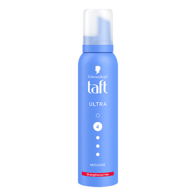 Schwarzkopf Taft Ultra Mousse 150 ml er en stylingmousse, der giver stærkere hår og langvarigt hold uden at klæbe. Den innovative Taft Ultra-formel beskytter håret mod skader fra føntørring og gør frisuren modstandsdygtig over for fugt og vind. Moussen er velegnet til alle hårtyper og sikrer kraftigt hold (niveau 4), samtidig med at håret føles naturligt og sundt.