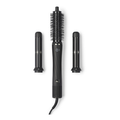 Vælg det ønskede stylinghoved, og klik det sikkert på enheden. Brug altid en varmebeskyttende spray i håndklædetørt hår. Tænd styleren og vælg passende varmeindstilling. Før børstehovedet gennem håret i sektioner for at skabe enten fylde, glatte længder eller bløde bølger. Brug koldluftsfunktionen til at afslutte og fastholde frisuren. Velegnet til daglig brug og alle hårtyper.