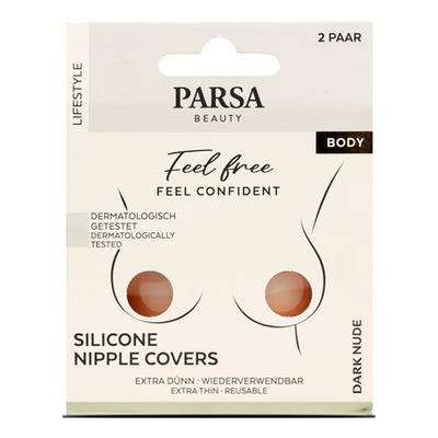 Parsa Beauty Nipple Covers Silicone er dermatologisk testede brystvortedækkere i farven dark nude. De er lavet i ekstra tyndt silikone, som sikrer en glat og usynlig finish under tøjet. Det selvklæbende materiale gør dem nemme at påføre og fjerne uden ubehag. Designet giver en naturlig dækning og føles behageligt mod huden, selv ved længere tids brug. De er ideelle til brug under stropløse, tætsiddende eller gennemsigtige styles.