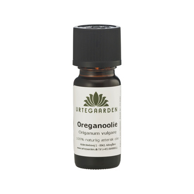 Urtegaardens oreganoolie er fremstillet ved vanddampdestillering af blad fra oreganoplanten (Origanum Vulgare). Den har en stærk, urteagtig duft.