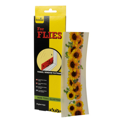 Med Trinol Window Flytrap kan du bekæmpe banan- og stuefluer på en nem og effektiv måde! Pakken indeholder 10 strips, som blot monteres direkte på vinduet og efterfølgende vil fange fluerne. Stripsene er designet med et dekorativt solsikkemotiv, som medfører, at fluerne indfanges forholdsvis diskret, da motivet camouflerer de indfangne fluer. Trinol Window Flytrap er desuden en mere miljøvenlig løsning og indeholder ingen giftige stoffer.
